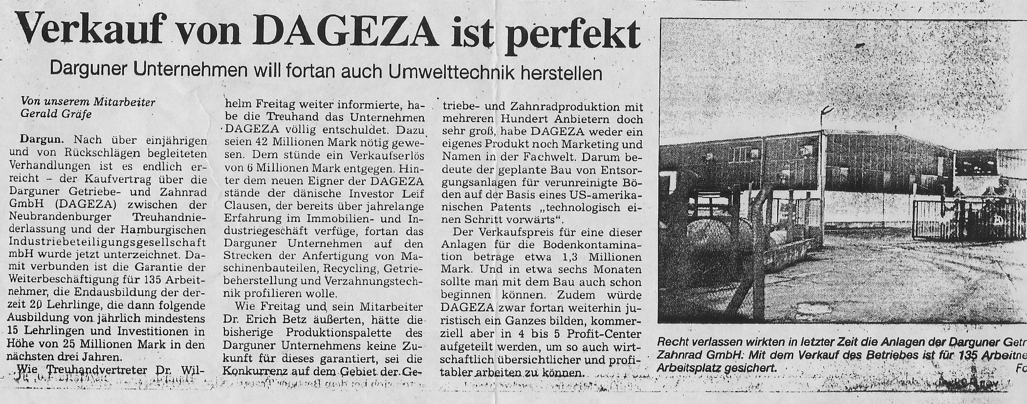 1994 Der Maschinenbau Dargun - 1994 das Aus: